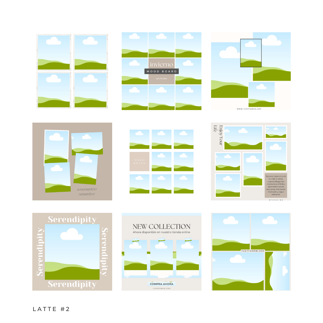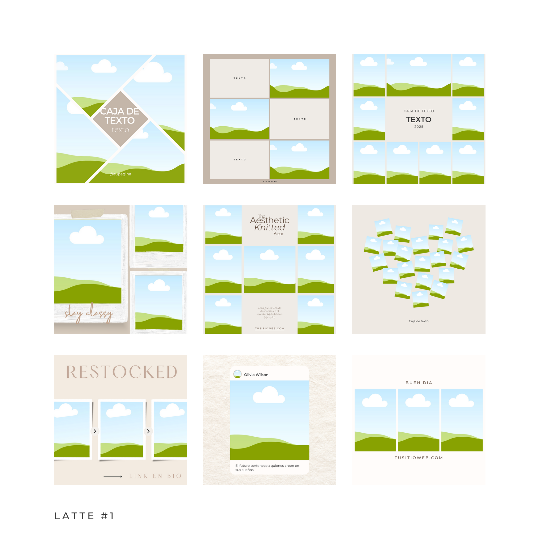 ⟡ 50 plantillas cuadradas (1080x1080px) listas para usar en Instagram.