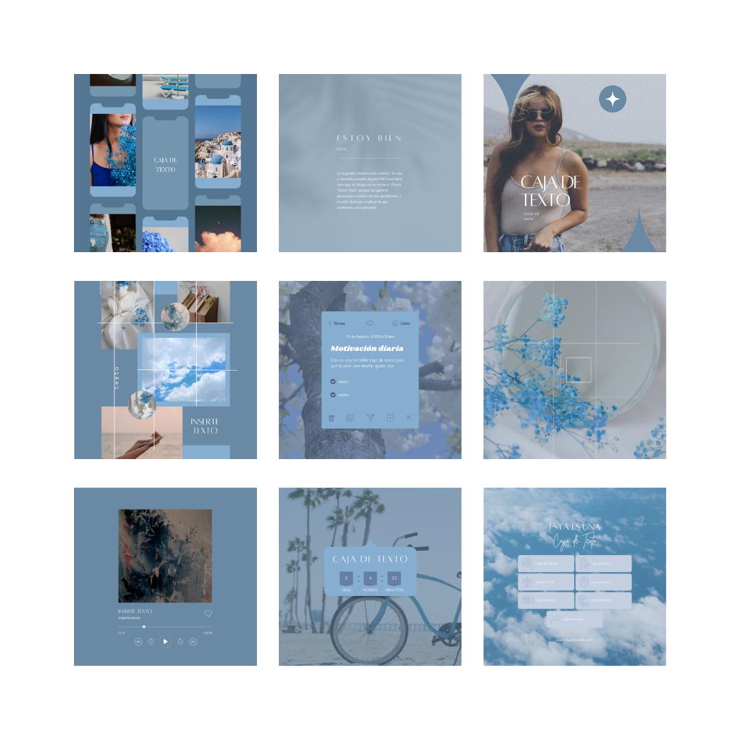 ⟡ 25 plantillas cuadradas (1080x1080px) listas para usar en Instagram.