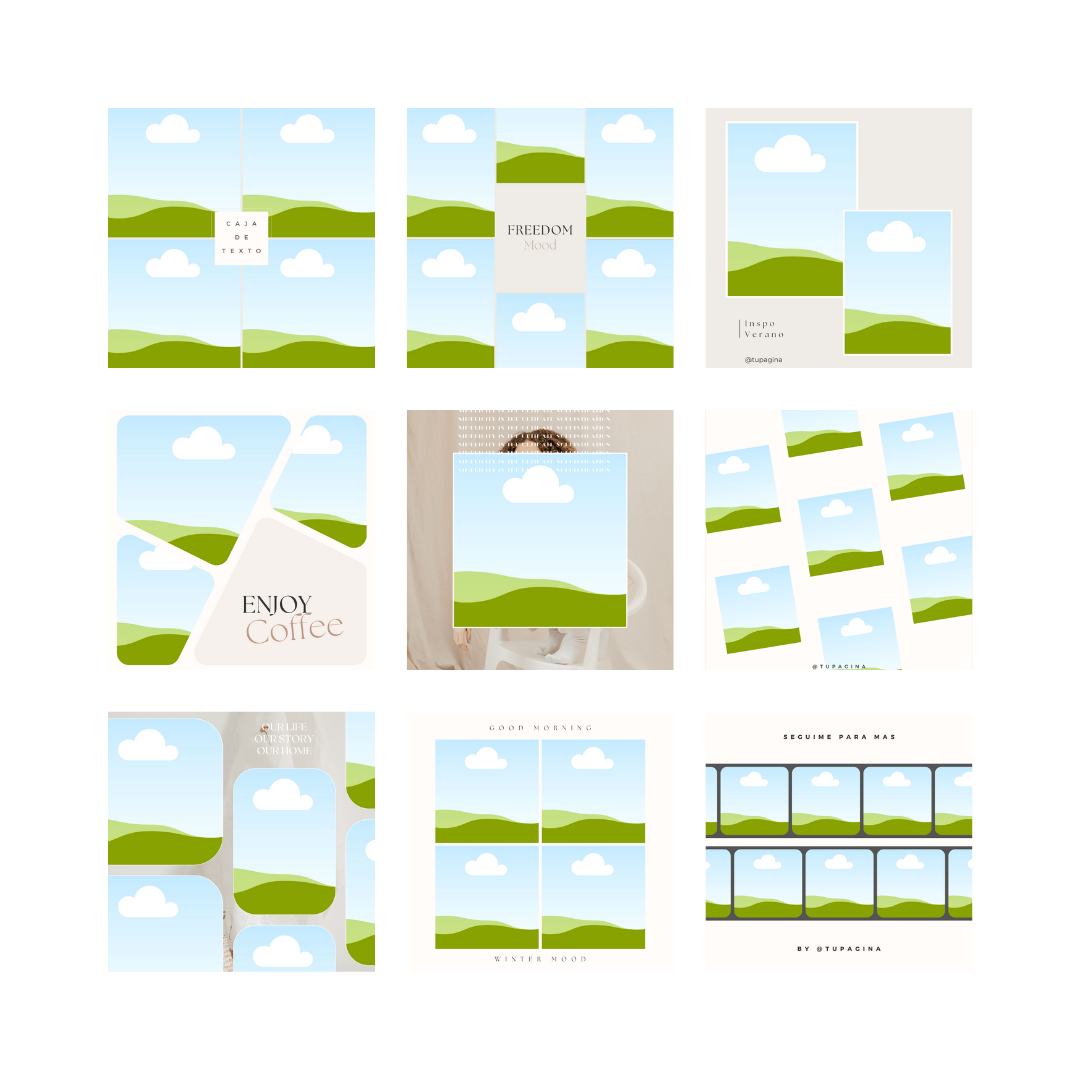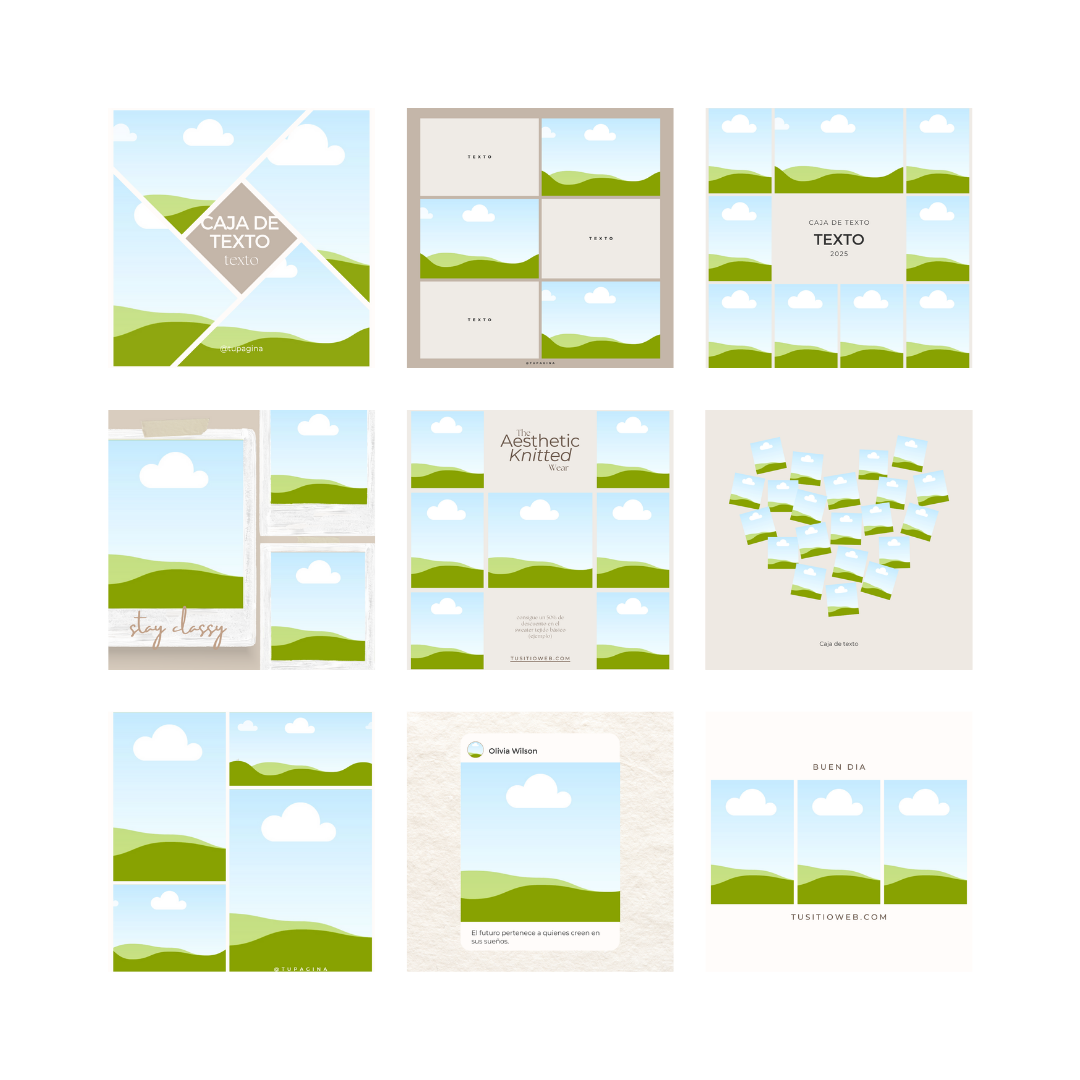 ⟡ 25 plantillas cuadradas (1080x1080px) listas para usar en Instagram.