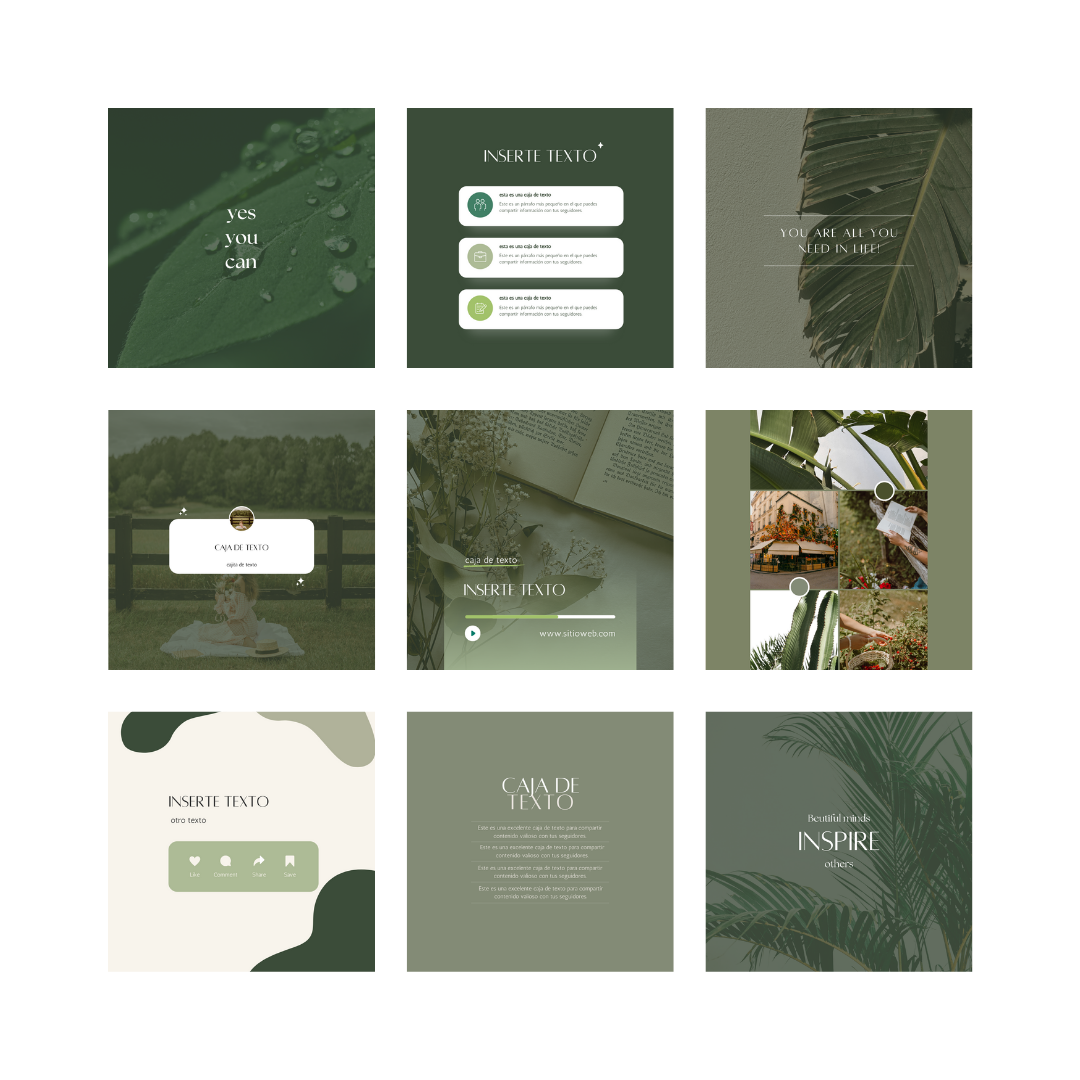 ⟡ 25 plantillas cuadradas (1080x1080px) listas para usar en Instagram.